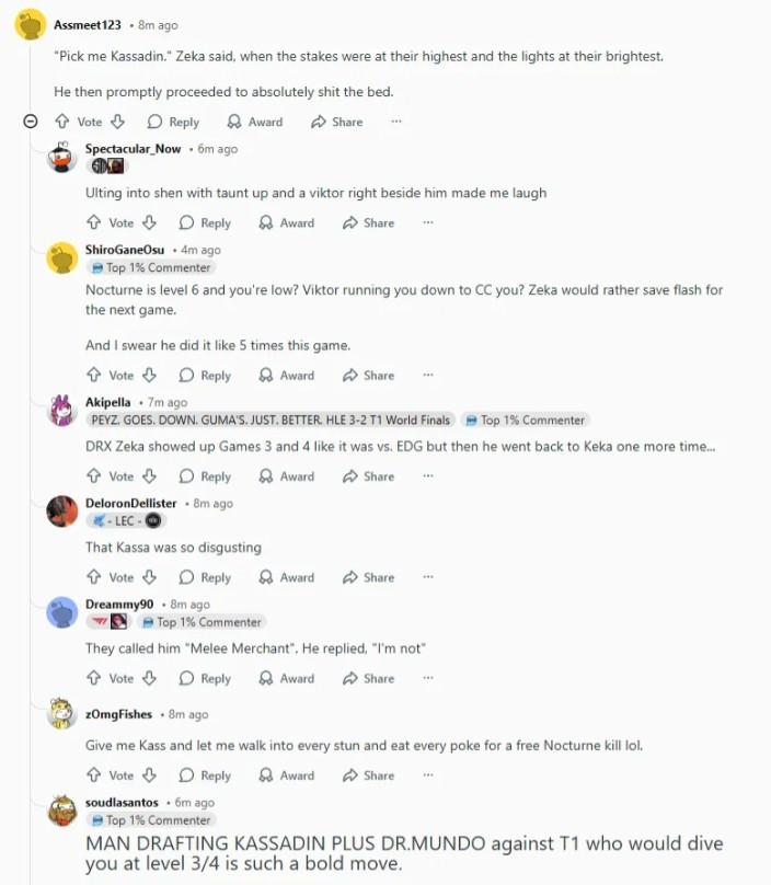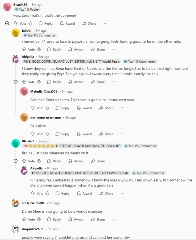 我知道他们不能再让Keria拿到巴德或妮蔻,而且现在打野亚托克斯也必须禁用,但他们居然又把泽丽放给Peyz了……我发誓每次看起来都是这个样子。